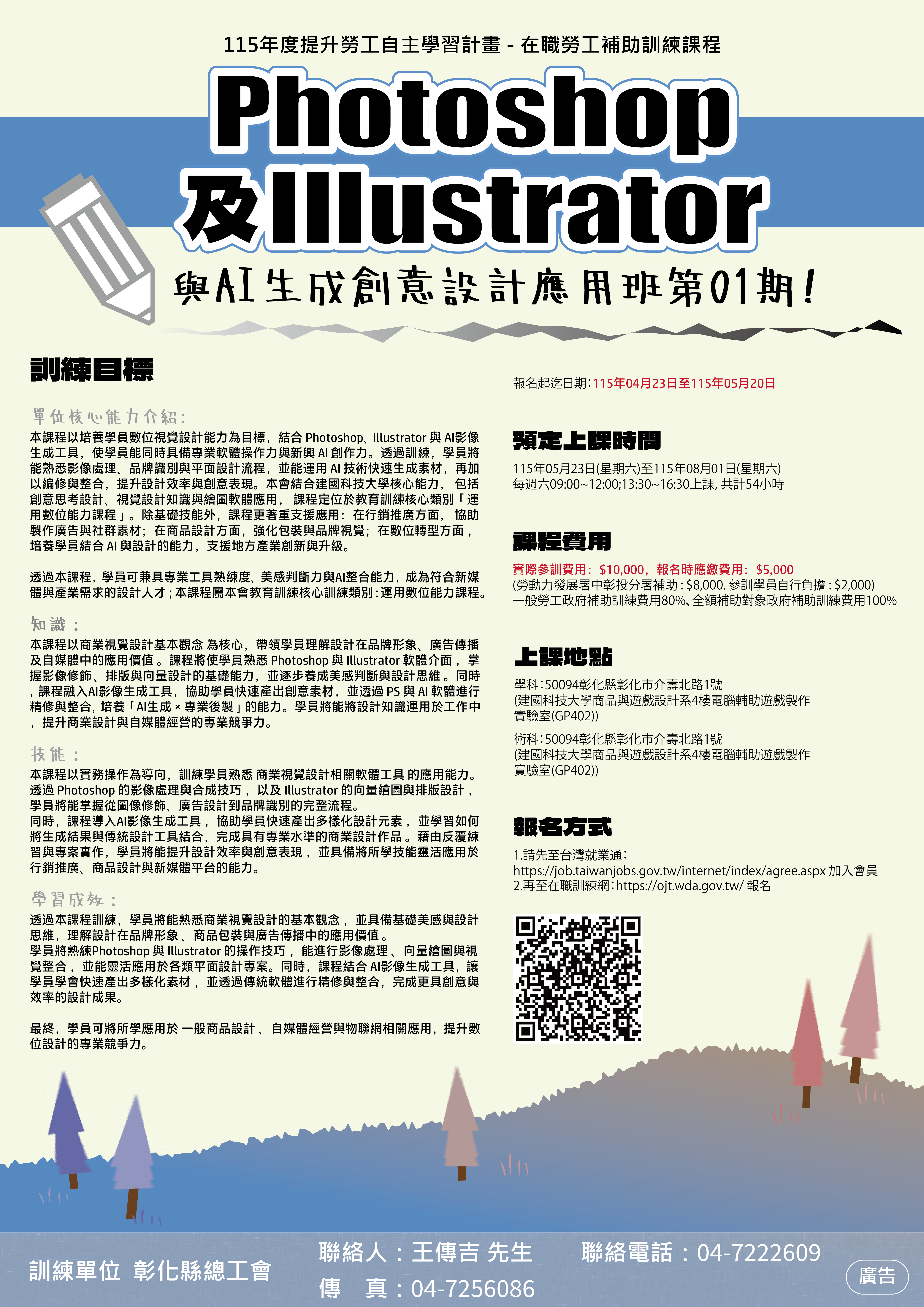 【招生中】彰化縣總工會-Photoshop及Illustrator與AI生成創意設計應用班第01期