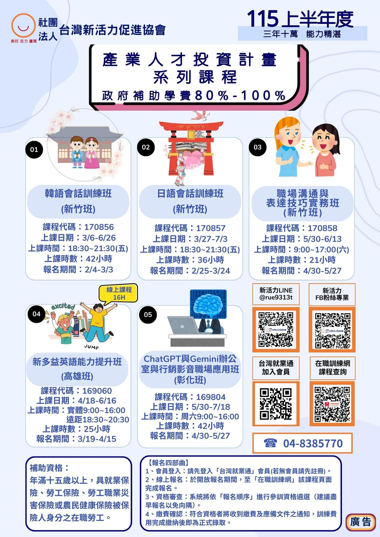 【招生中】社團法人台灣新活力促進協會-ChatGPT與Gemini辦公室與行銷影音職場應用班