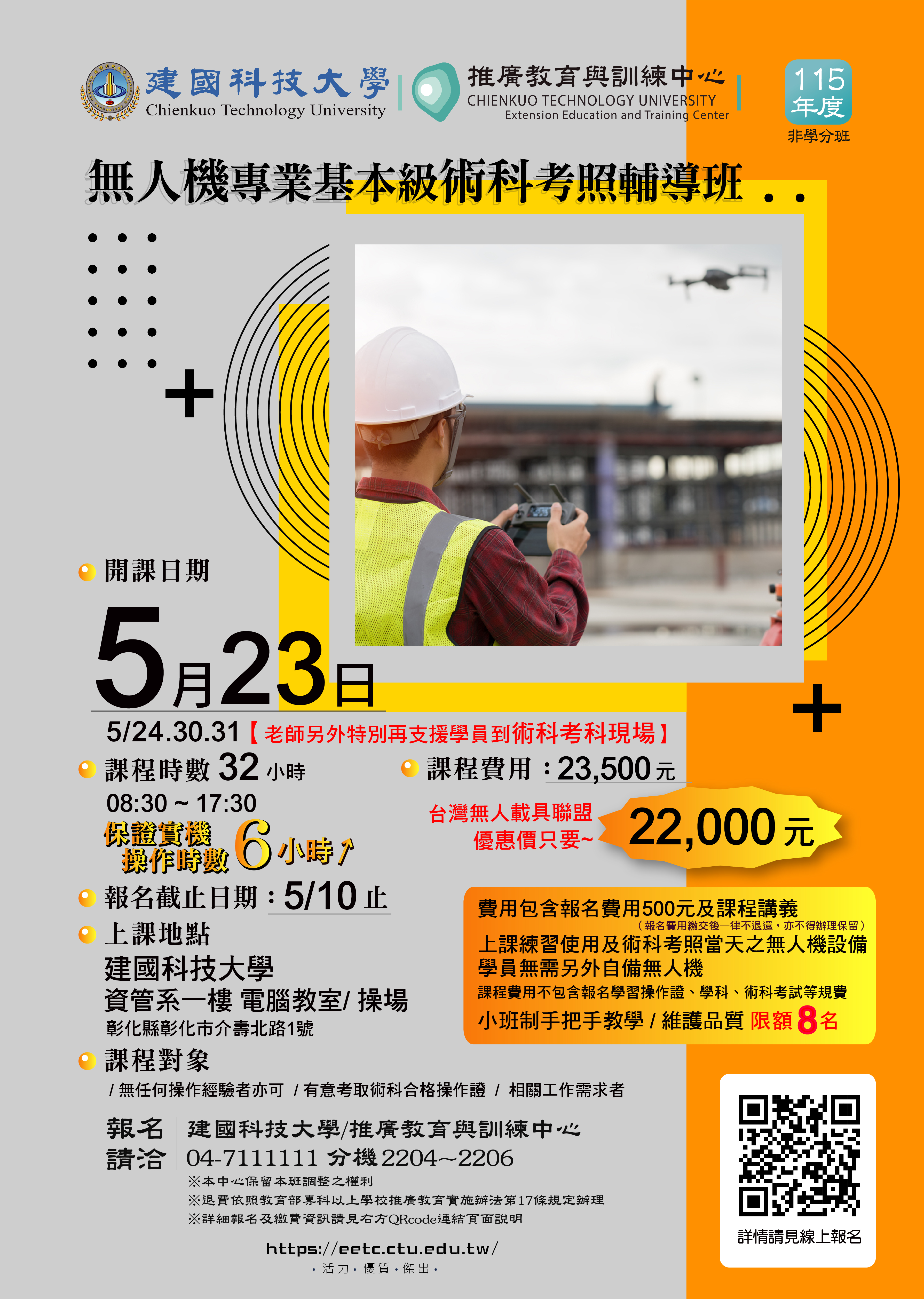 上課日期:115/05/23、05/24、05/30、05/31(每周六日)