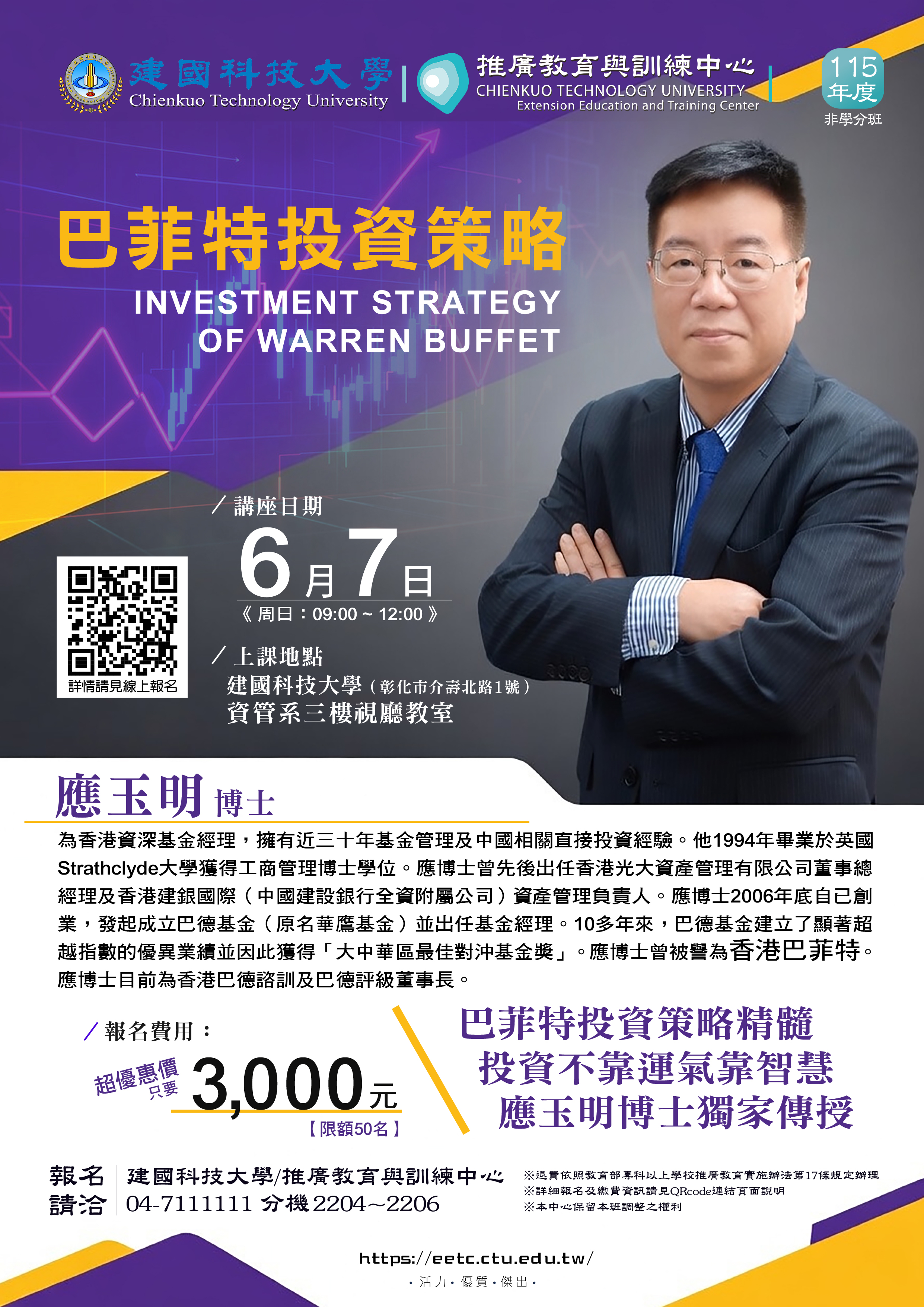 巴菲特投資策略精髓,投資不靠運氣靠智慧,應玉明博士獨家傳授